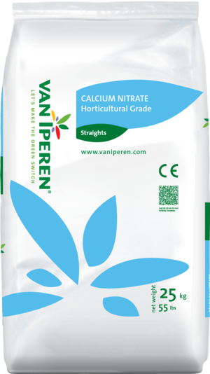 Van Iperen Nitrato de Calcio Grado Hortícola es un fertilizante de calcio muy puro que se disuelve por completo de forma rápida. Nuestro producto tiene una baja tendencia al apelmazamiento y lo recomendamos desde principios de la primavera hasta la fructificación y el desarrollo de los frutos. Al ser rico en calcio, este fertilizante mejora la resistencia de las paredes celulares durante las fases activas de división celular. La presencia de nitrato permite que la planta absorba mejor el calcio.