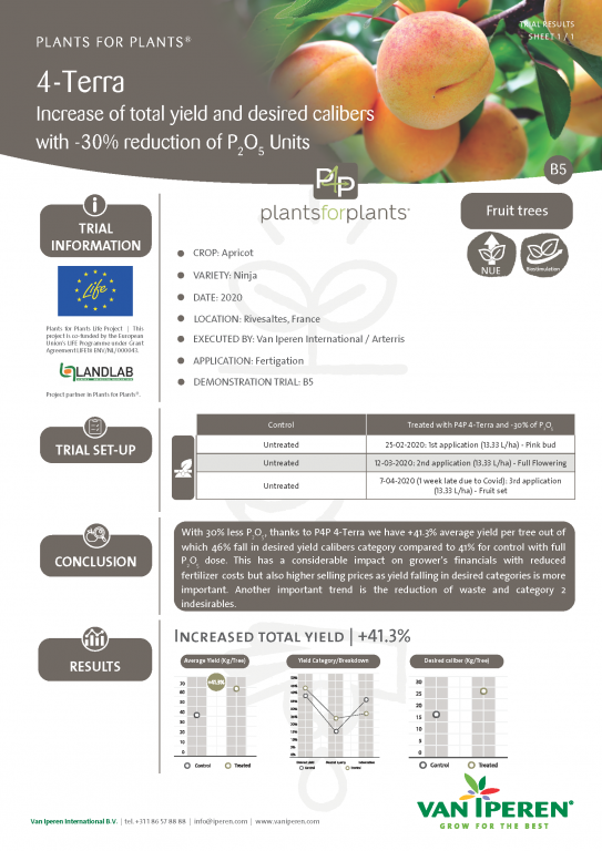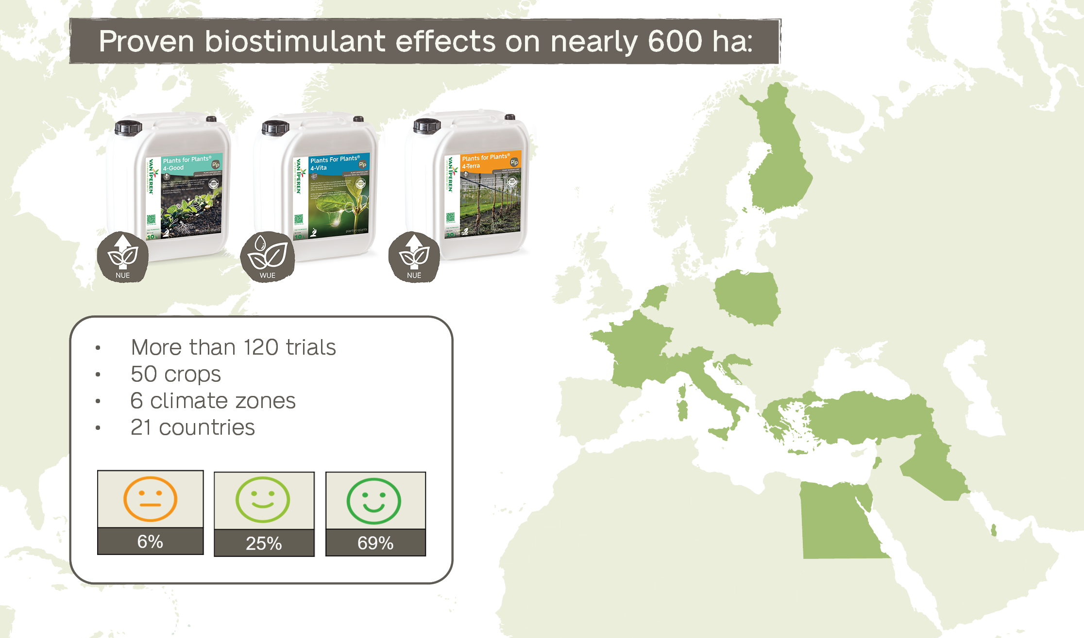The Trial Result Book Year 2024-2025 unveils all relevant information about each trial and concrete results per crop and type of plant-based biostimulants—Plants for Plants® 4-Good, Plants for Plants® 4-Vita, and Plants for Plants® 4-Terra- tested. These are the results: