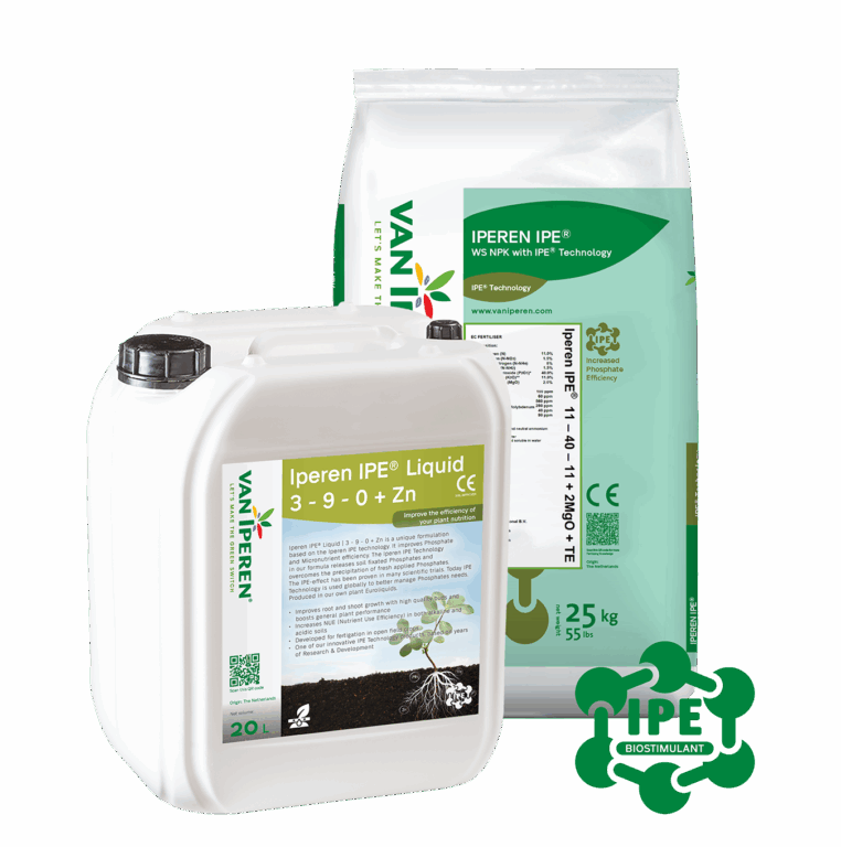 Iperen IPE® Technology significantly increases the level of Phosphate available for the plant. It releases Phosphate absorbed to soil particles and prevents fixation of fresh applied Phosphate. This is how the Iperen IPE® Technology has a clear effect on the initial plant development. Growers who work with IPE® Technology use less Phosphate and see better results. In addition, they benefit from the positive side effects: the soil structure improves as well as the availability of Micronutrients to the plant.